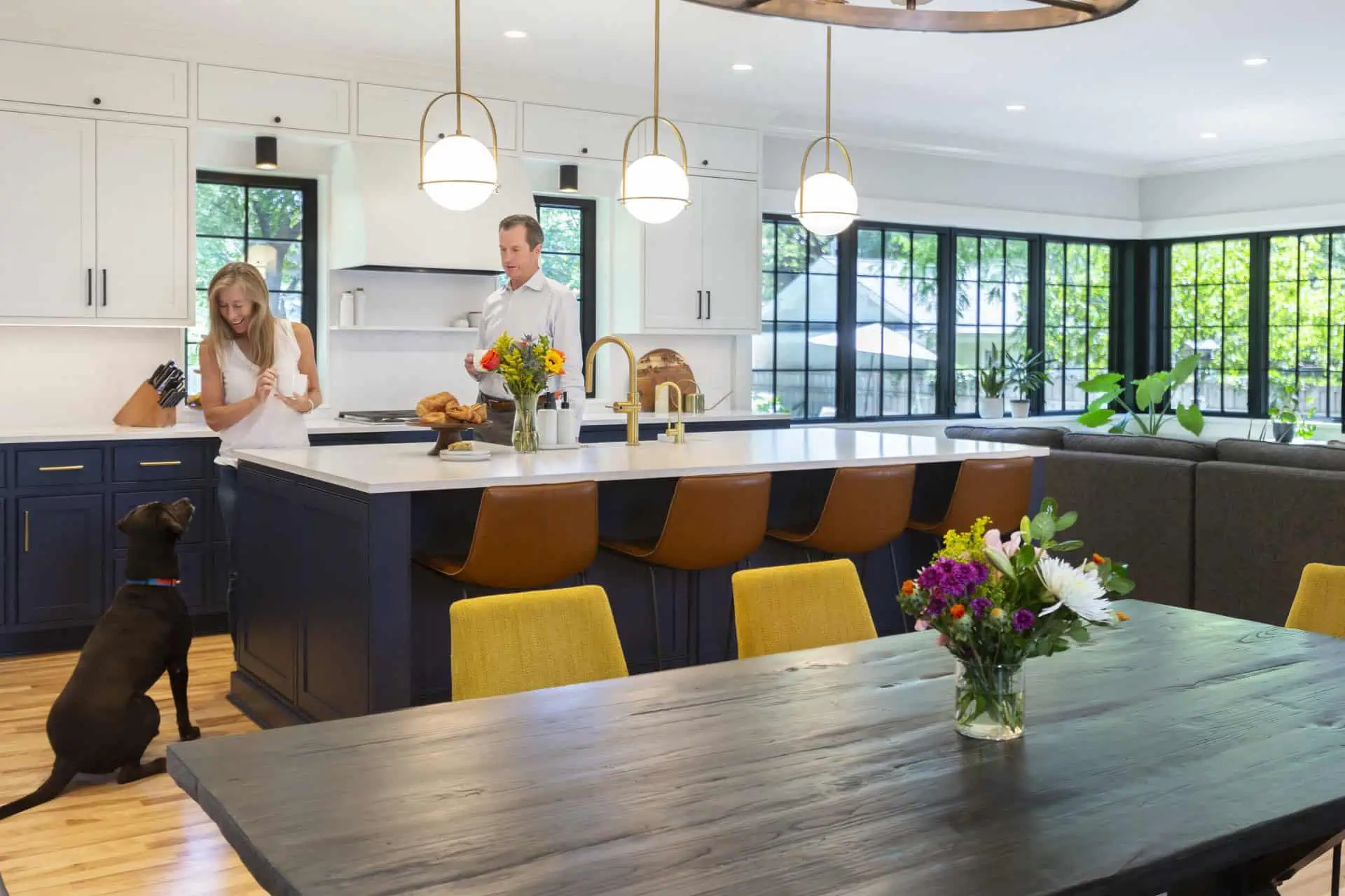 This home had a spacious lot with a pool, but the views and circulation were lacking. Our homeowners were eager to have a welcoming space to entertain their family and friends. We built an addition that extends to the back and side of the home creating space for a large kitchen, cozy dinette, and an inviting family room. The homeowners wanted to make the most of their backyard, so we built wall-to-wall windows letting in plenty of natural light and stunning views. We transformed the old, dimly lit kitchen into a versatile space, now serving as a convenient powder room, a handy pantry, and a practical mudroom entry. This project won a national Chrysalis home addition award in 2023 and a 2023 Remodeler of Merit Award.