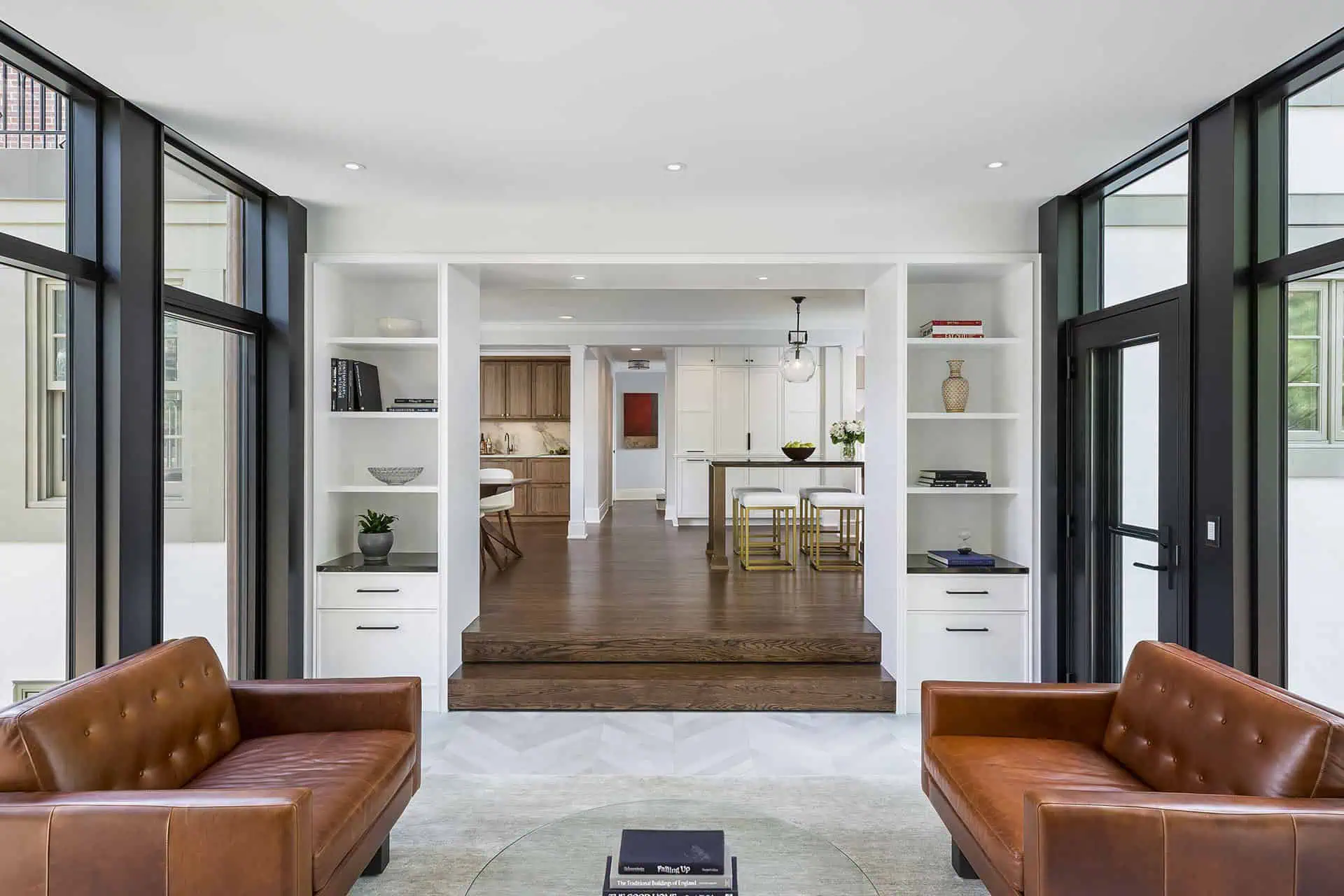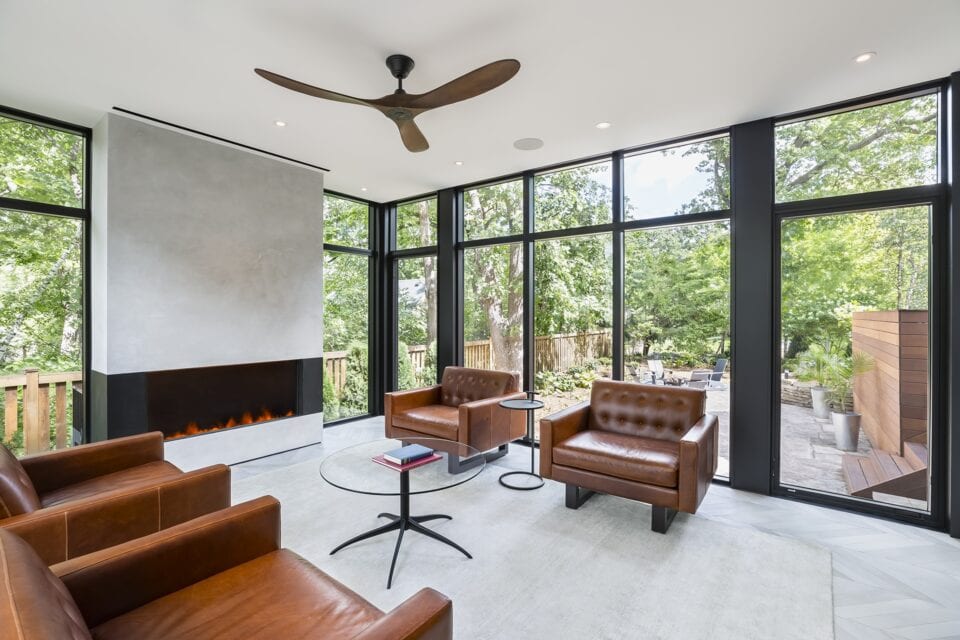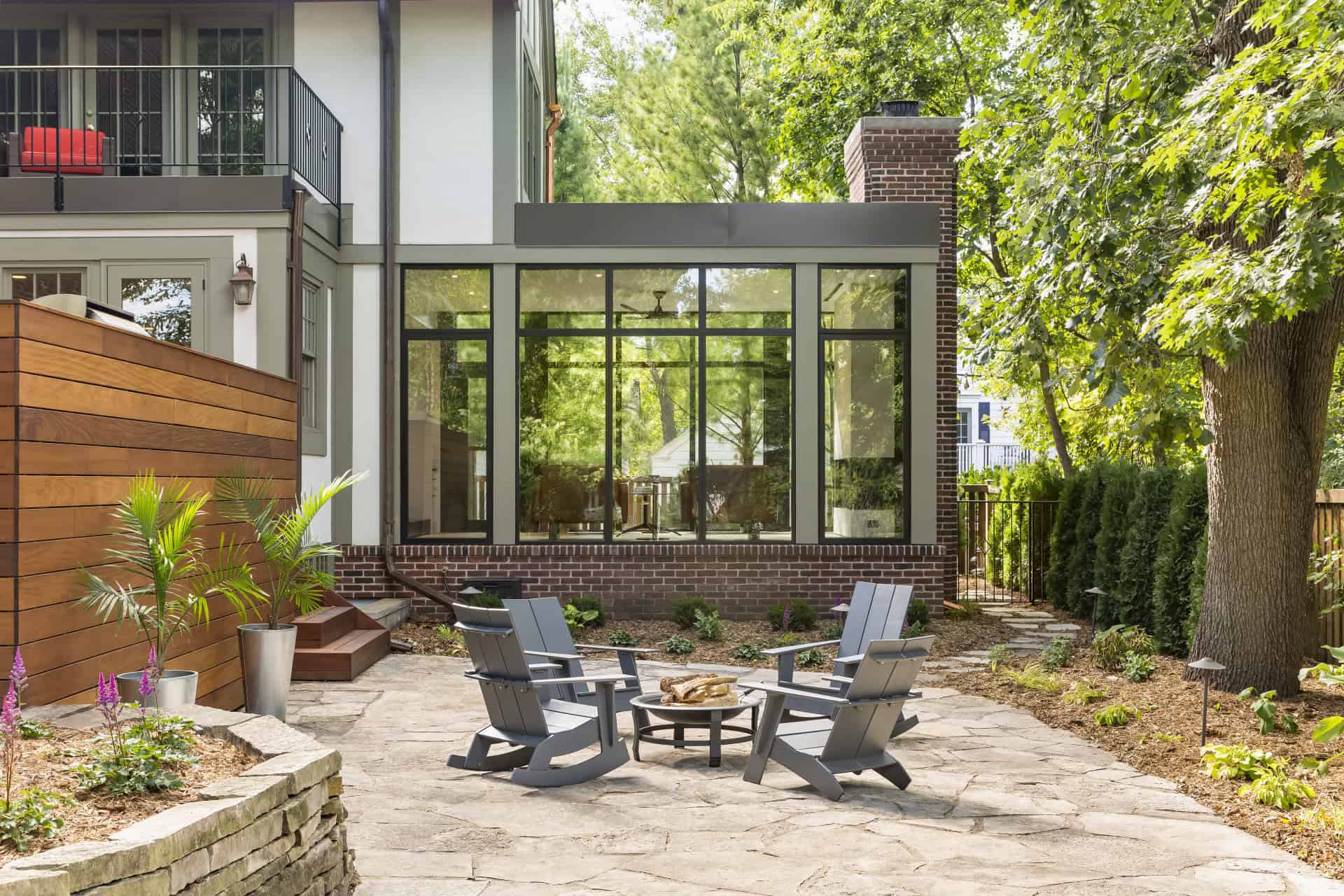 The owners of this classic Tudor home in the Cedar Lake area of Minneapolis loved its layout and charm, but they felt cut off from the outdoors. Quartersawn worked with the homeowners to design a modern sunroom with floor-to-ceiling windows, sleek lines, and a neutral color palette that extends into the side yard. This architectural โglass boxโ seamlessly blends the charm of a traditional Tudor home with contemporary design creating a sunny oasis that invites relaxation and enjoyment all year round.